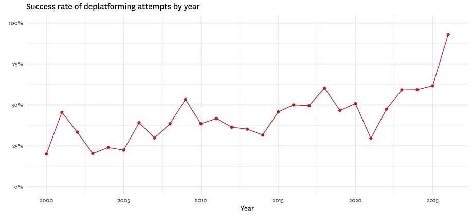 In just the first three months of this year, there have been 70 such attempts. Even worse, 65 of those attempts succeeded — the highest success rate we’ve ever recorded in any year with 10 or more attempts.