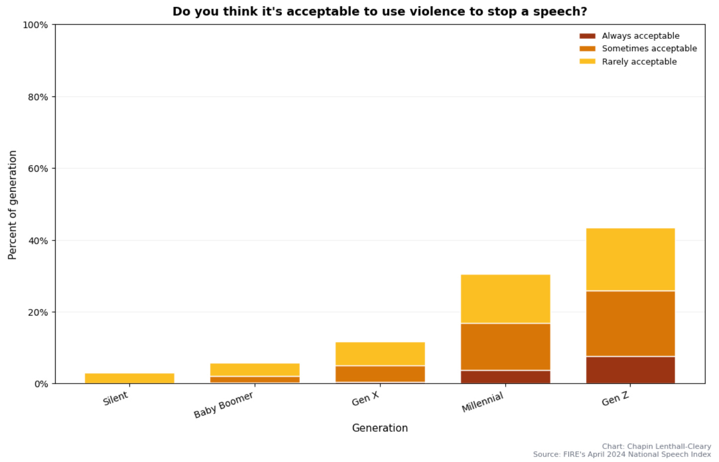 Gen Z is 10 times more accepting of violence against speakers than Boomers