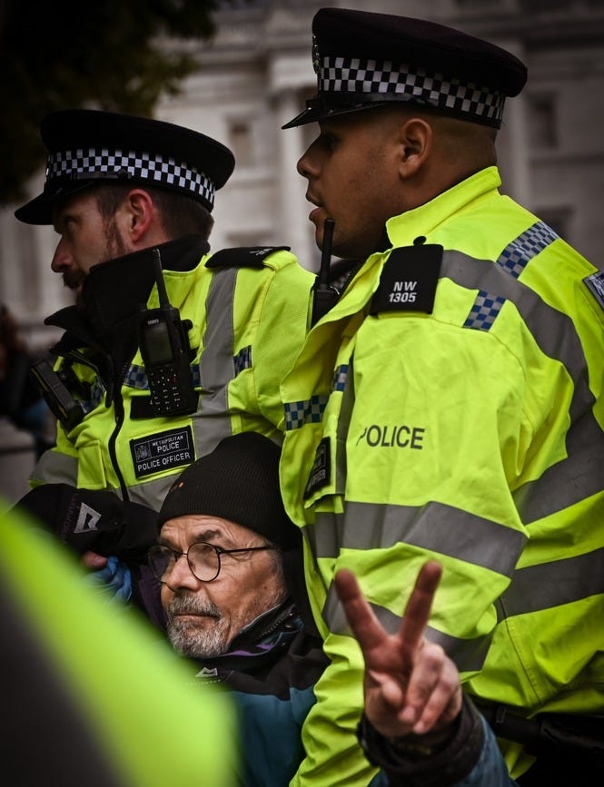 And they meant that quite literally. Since last summer, at least 2,787 people have been arrested for expressing support for the group, many for holding signs reading “I oppose genocide, I support Palestine Action.”