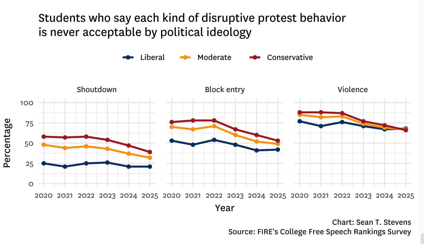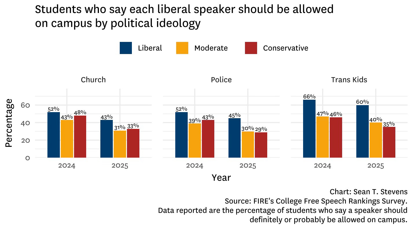In other words, the vibe shift in campus censorship is real, and free expression is now under threat from both sides.