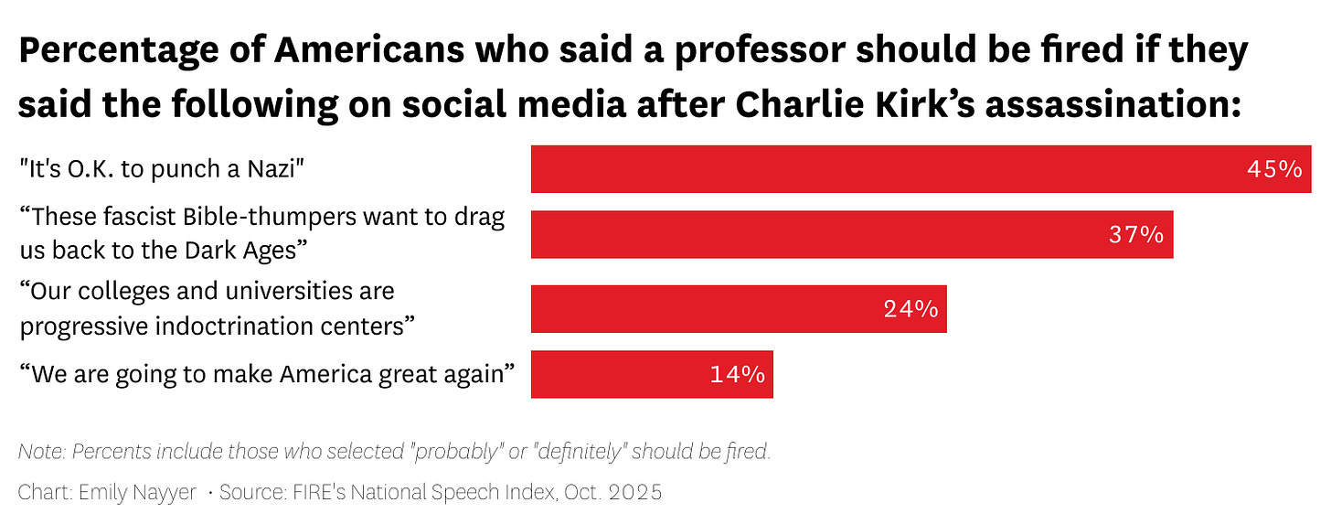 45% say a professor who posted “It’s O.K. to punch a Nazi” should probably or definitely be fired from their job.